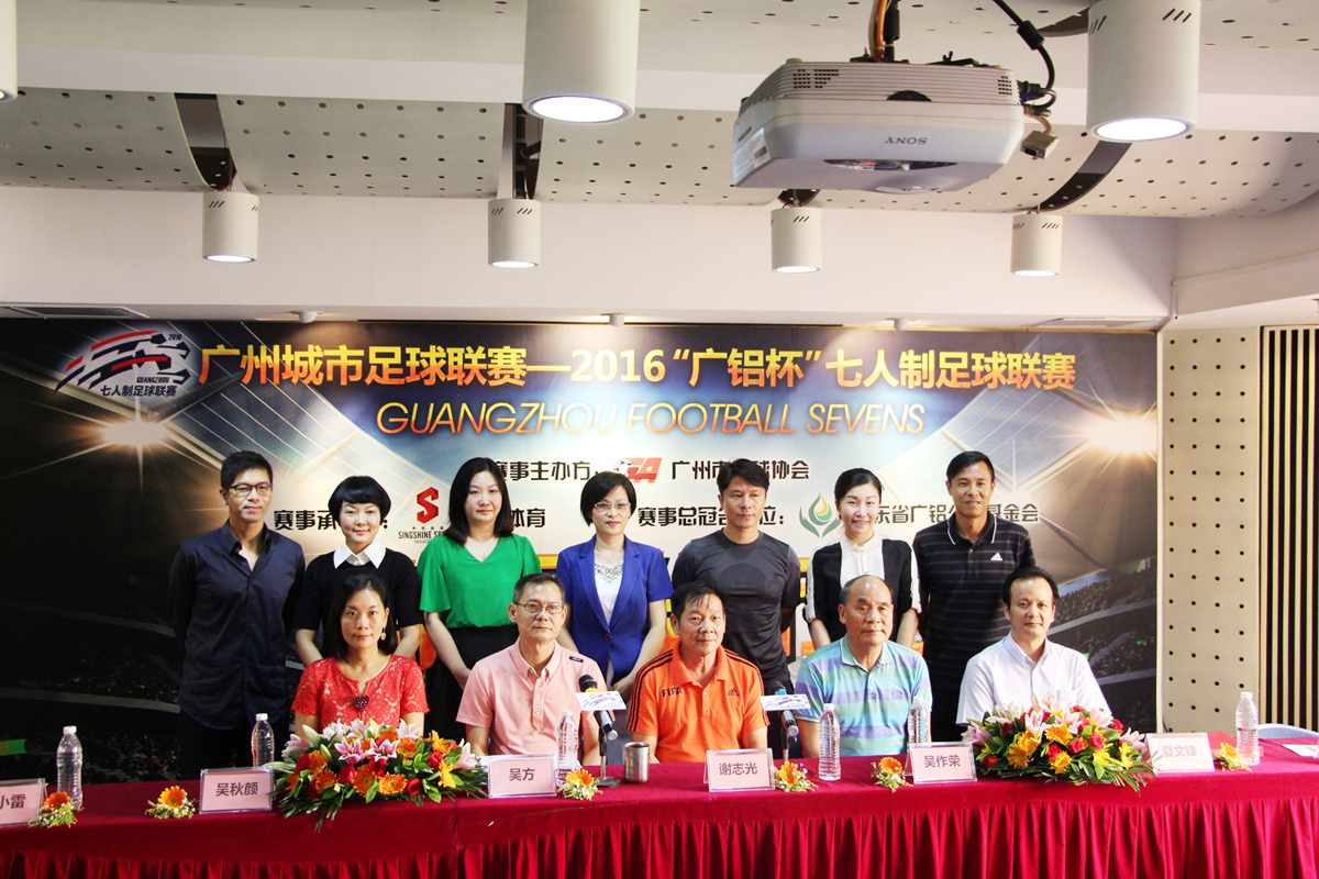 8月10日,由廣東省廣鋁公益基金會(huì)獨(dú)家冠名贊助、廣州市足球協(xié)會(huì)主辦、聲色體育承辦的廣州市城市足球聯(lián)賽—2016“廣鋁杯”七人制足球聯(lián)賽新聞發(fā)布會(huì)于越秀山體育場(chǎng)隆重召開(kāi)。出席的嘉賓有廣州市足球協(xié)會(huì)主席謝志光先生,廣州市足球協(xié)會(huì)副秘書長(zhǎng)吳方先生,廣東省廣鋁公益基金會(huì)理事長(zhǎng)吳作榮先生、監(jiān)事暨本次賽事主委會(huì)榮譽(yù)主席夏文鋒先生、秘書長(zhǎng)董小雷、理事吳秋顏女士、理事鄭麗華、理事丘偉娟,廣州聲色體育活動(dòng)策劃有限公司總經(jīng)理曾巧瑩女士,足球名宿彭偉國(guó)、足球名宿胡志軍、著名體育評(píng)述員丁偉杰。