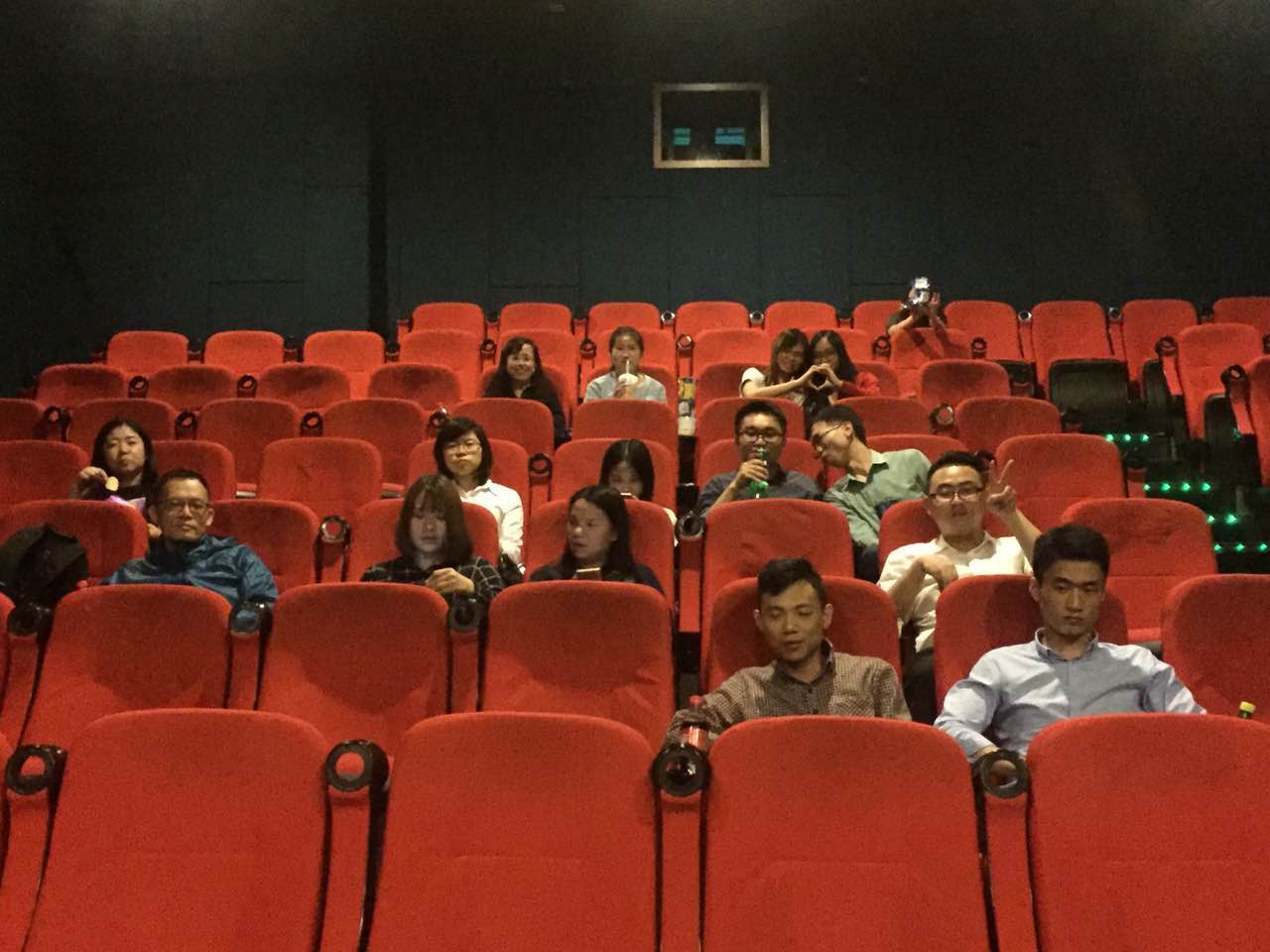 當天下午,員工陸續(xù)來到了佛山大洋時代影城,佛山大洋時代影城位于佛山ICC國際商業(yè)中心內(nèi),由盈基公司投資開發(fā)、經(jīng)營,是一家完全按照國際五星級影城標準建造、裝修的現(xiàn)代化電影院,設(shè)備先進,格調(diào)高雅。在影院工作人員的帶領(lǐng)下,員工們參觀了影院,總面積3200平方米,擁有866個座位,共有6個影廳,擁有多個3D放映廳,其中包括佛山巨幕“D-MAX”多功能影廳。隨后,員工們?nèi)胱皬d,準備觀影,公司還貼心地為在場的員工提供零食、飲料還有毛毯,滿滿的關(guān)懷??廴诵南业那楣?jié),震耳欲聾的音效,精湛的演技,將在場的人帶進了電影的世界,大家也隨著劇情的發(fā)展時而神經(jīng)緊繃,時而感動。兩個小時的觀影時間很快就過去了,不過很多同事反映覺得自己還沉浸在精彩的故事情結(jié)里,意猶未盡。