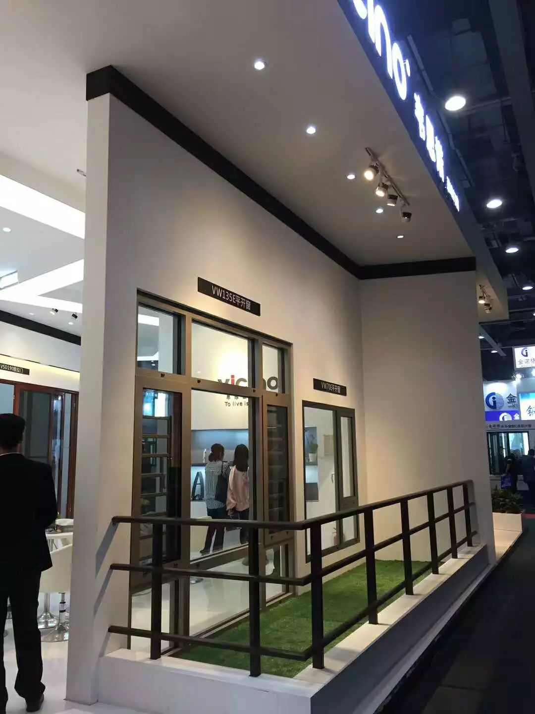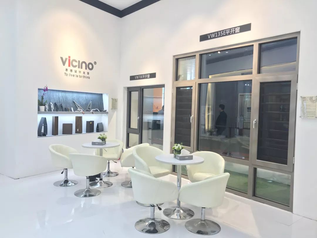 廣鋁集團(tuán)本屆展會設(shè)計簡潔高端,以韋思諾vicino品牌為主,其中有隔熱平開門、節(jié)能平開窗、隔熱提升推拉門、推拉窗等,型材簡潔而不失穩(wěn)重,給人一種大氣而安全牢固的溫馨感,得到了眾多買家的認(rèn)可和關(guān)注。