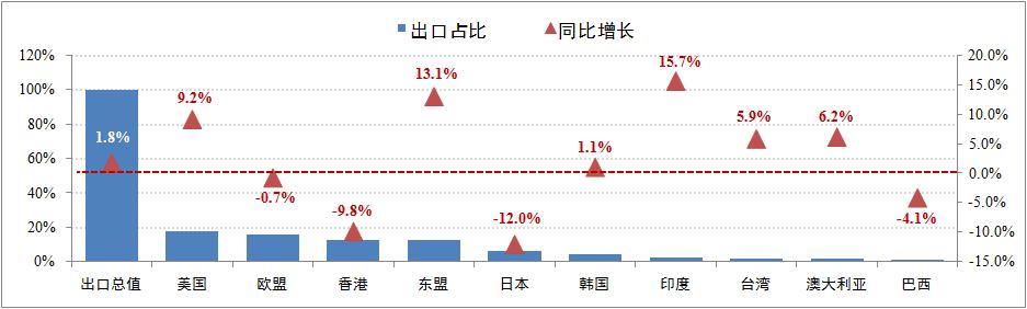 國際貿(mào)易方面,我國的外貿(mào)形勢仍顯疲態(tài),但亮點逐步呈現(xiàn)。海關(guān)數(shù)據(jù)顯示,4月份我國進出口總值1.96萬億元人民幣,比同期下降10.9%。其中,出口1.08萬億元,下降6.2%;進口8739億元,下降16.1%;貿(mào)易順差2102.1億元,擴大85.2%。我國進口增速較為疲弱,反映了國際大宗商品價格低迷、內(nèi)需不振和經(jīng)濟下行壓力較大的現(xiàn)狀。但是從貿(mào)易結(jié)構(gòu)上看,我國對新興市場出口增勢良好,其中對東盟、印度、非洲等三個新興市場出口分別增長13.1%、15.7%、18.7%;中西部地區(qū)進出口保持增長,一般貿(mào)易進出口比重提升,加工貿(mào)易進出口比重下降;民營企業(yè)進出口比重提升。
