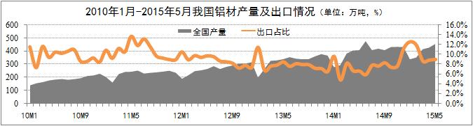 鋁材業(yè)務(wù)平穩(wěn)增長。統(tǒng)計數(shù)據(jù)顯示,5月份國內(nèi)鋁材產(chǎn)量456萬噸,環(huán)比增長6.8%;鋁材出口41萬噸,環(huán)比增長7.9%,占鋁材總產(chǎn)量的9%,占比環(huán)比略有上升。出口份額的增長即得益于國際市場經(jīng)濟(jì)的復(fù)蘇預(yù)期,得益于財政部取消部分鋁產(chǎn)品15%的關(guān)稅政策。取消關(guān)稅的部分鋁材包括:非合金鋁條、桿;截面周長≥210mm的鋁合金制條、桿;截面周長<210mm的鋁合金條、桿。