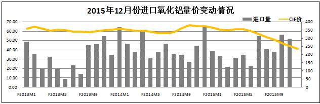 進(jìn)口市場情況。統(tǒng)計(jì)期內(nèi),進(jìn)口氧化鋁市場價(jià)格波動(dòng)趨勢基與國內(nèi)市場基本一致。進(jìn)口量方面,11月全國進(jìn)口氧化鋁52萬噸,較去年同期增長18%,環(huán)比有所回落;價(jià)格方面,11月CIF均價(jià)236美元,折合人民幣1529元/噸,環(huán)比下降5.6%。進(jìn)口價(jià)格持續(xù)下跌折射出國際有色市場的悲觀氣氛仍在持續(xù),同時(shí)進(jìn)口價(jià)格下跌速度放緩將會(huì)轉(zhuǎn)化進(jìn)口需求為國產(chǎn)需求。