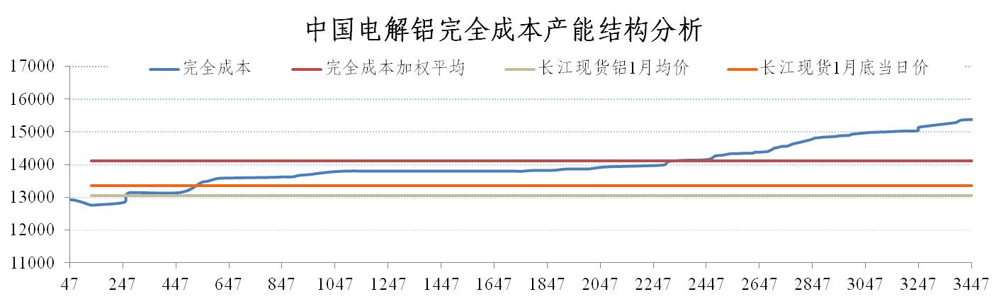 電解鋁生產(chǎn)成本方面。電解鋁生產(chǎn)成本呈現(xiàn)穩(wěn)中微降態(tài)勢。2月份全國電解鋁加權(quán)平均完全成本 13794 元/噸,較1月份上升166元/噸。2月電解鋁成本僅小幅上升,而月內(nèi)鋁價在政策指引下表現(xiàn)強(qiáng)勢。從絕對數(shù)字對比來看,電解鋁企業(yè)虧損情況本月有所緩解;完全成本來看,全行業(yè)噸鋁月均理論虧損 137元。整體來看,電解鋁企業(yè)成本有回落的趨勢。據(jù)了解,目前山東鋁企外購煤炭價格已經(jīng)出現(xiàn)明顯下滑,對自備電廠企業(yè)成本影響顯著,加之氧化鋁調(diào)整趨勢不改,預(yù)計3月電解鋁企業(yè)整體成本將下降。