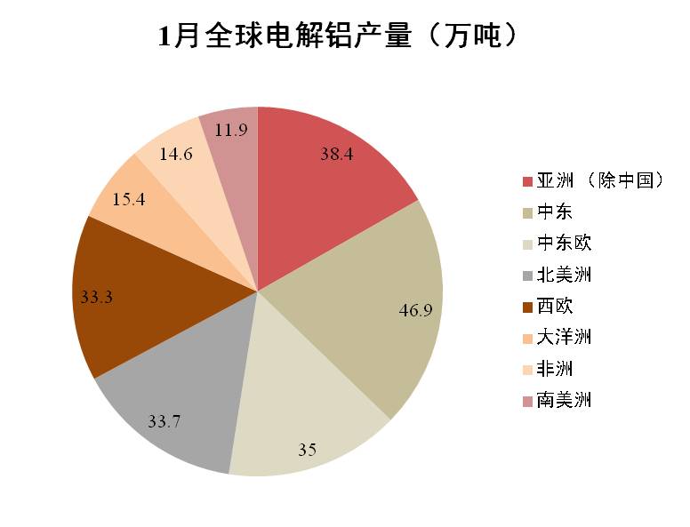 數(shù)據(jù)顯示,1月全球(除中國)原鋁產(chǎn)量環(huán)比微增0.1%至229.2萬噸。當(dāng)月日產(chǎn)量由12月的7.383萬噸增至7.393萬噸。預(yù)計2月份全球產(chǎn)量因生產(chǎn)天數(shù)減少出現(xiàn)下滑,但受印度新增產(chǎn)能和大洋洲復(fù)產(chǎn)的拉動,日產(chǎn)量將繼續(xù)增長。