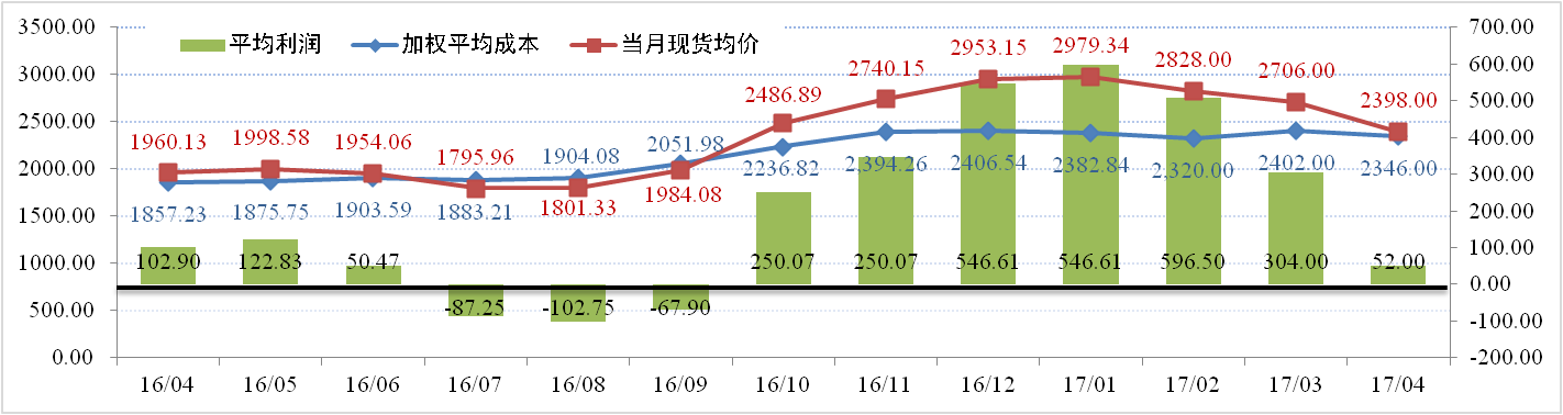 援引行業(yè)數(shù)據(jù)顯示:2017年4月中國國產(chǎn)氧化鋁按運(yùn)行產(chǎn)能加權(quán)平均成本2346元/噸,較3月份下跌約54元/噸。其中,煤炭和礦石價(jià)格小幅下滑、燒堿價(jià)格受環(huán)保因素影響相對堅(jiān)挺。以4 月末的大單成交平均價(jià)格 2300 元來計(jì)算,多數(shù)氧化鋁企業(yè)已經(jīng)開始進(jìn)入盈虧平衡甚至微虧狀態(tài)。
