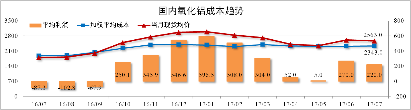 分析認(rèn)為:高煤價(jià)刺激煤企有效產(chǎn)能快速釋放,隨著高溫天氣接近結(jié)束,下游需求放緩,預(yù)計(jì)煤價(jià)在8月末有所下滑;環(huán)保督查影響短期內(nèi)不會減弱,鋁土礦、片堿供應(yīng)緊張仍具上漲動能。預(yù)計(jì)8月份氧化鋁生產(chǎn)成本保持穩(wěn)定。
