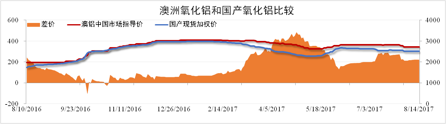 分析認(rèn)為:國內(nèi)氧化鋁市場總體供應(yīng)偏緊。在澳洲氧化鋁與國產(chǎn)氧化鋁價(jià)差雖價(jià)差逐漸縮小。但國內(nèi)氧化鋁價(jià)格偏弱,尤其山東地區(qū)氧化鋁開始進(jìn)入現(xiàn)貨市場;預(yù)計(jì)8月澳洲氧化鋁進(jìn)口價(jià)格小幅下跌。
