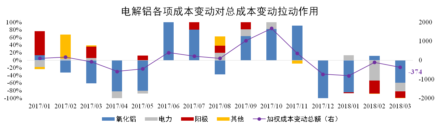 分析認(rèn)為:3月氧化鋁價(jià)格受基本面及政策主導(dǎo)價(jià)格下降,煤炭供應(yīng)寬松,煤企主動(dòng)下調(diào)價(jià)格致使電力成本繼續(xù)下跌,陽極復(fù)產(chǎn)加快供應(yīng)過剩拖累價(jià)格進(jìn)一步下滑,預(yù)計(jì)電解鋁成本仍將延續(xù)下降趨勢(shì)。