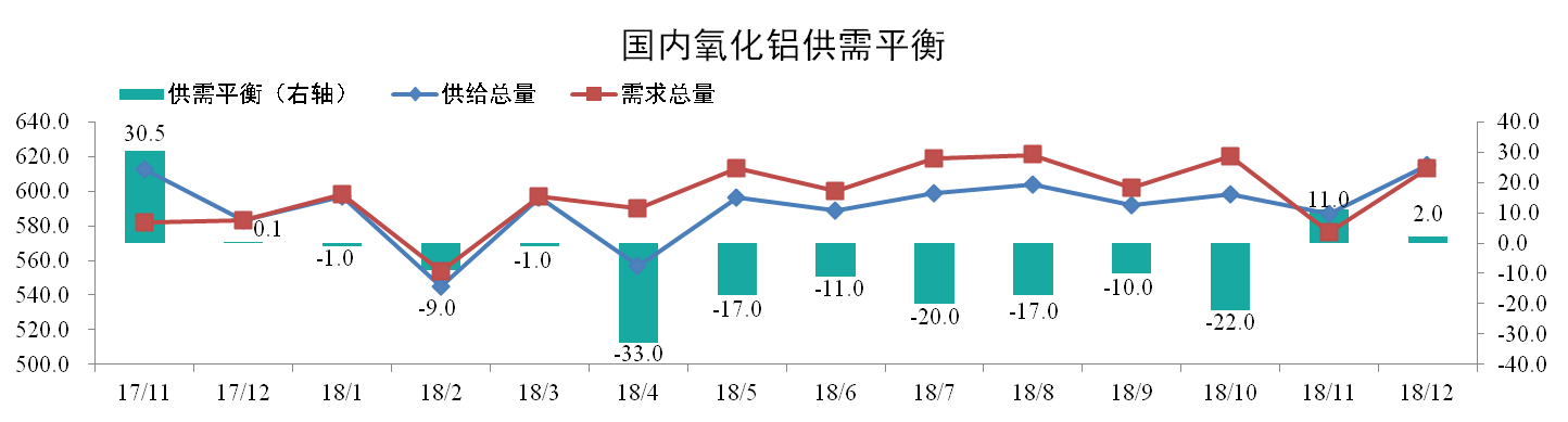 分析認(rèn)為:12月礦石供應(yīng)逐漸穩(wěn)定,加之利潤驅(qū)使,氧化鋁產(chǎn)量有所增加,下游需求依舊疲軟,氧化鋁供給過剩。1月氧化鋁價格將下行至臨界點,部分企業(yè)將出現(xiàn)適度減產(chǎn),但需求仍處弱勢,預(yù)估供給過剩。