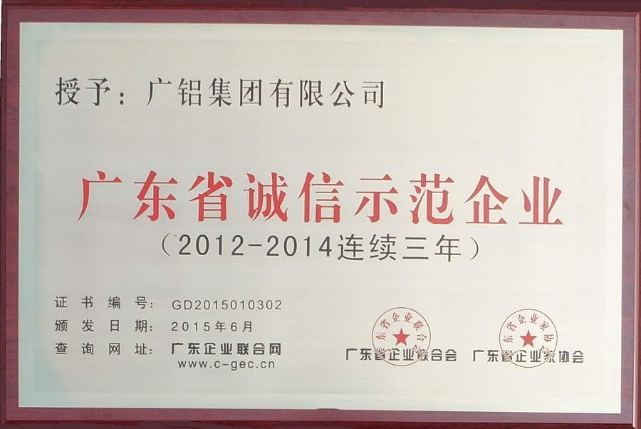 廣鋁集團(tuán)連續(xù)三年獲“廣東省誠(chéng)信示范企業(yè)”殊榮