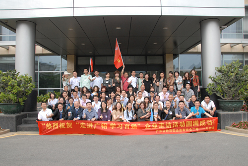 Post time:2011-04-15為了加強企業(yè)之間的文化及運作模式的交流,從中汲取各方之所長,以及通過對企業(yè)文化、企業(yè)運作模式的了解從而希望尋找合作機會。2011年4月14日14:00時,廣東省教導型企業(yè)家協(xié)會的部分會員單位,來自華泰聯(lián)合證券、珠江啤酒、齊創(chuàng)輝集團控股(香港)有限公司等多家知名企業(yè)管理人員一行60余人蒞臨我司參觀考察,在我司接待人員的帶領下分別參觀了一樓企業(yè)文化展示廳和二樓鋁文化展示廳,參觀過程中來訪嘉賓紛紛對我司濃厚的幸福企業(yè)文化氛圍、高速的企業(yè)發(fā)展模式和新穎的、高技術含量的產(chǎn)品表示了高度贊賞和肯定,并表示以后將多途徑、多角度的尋找合作契機。